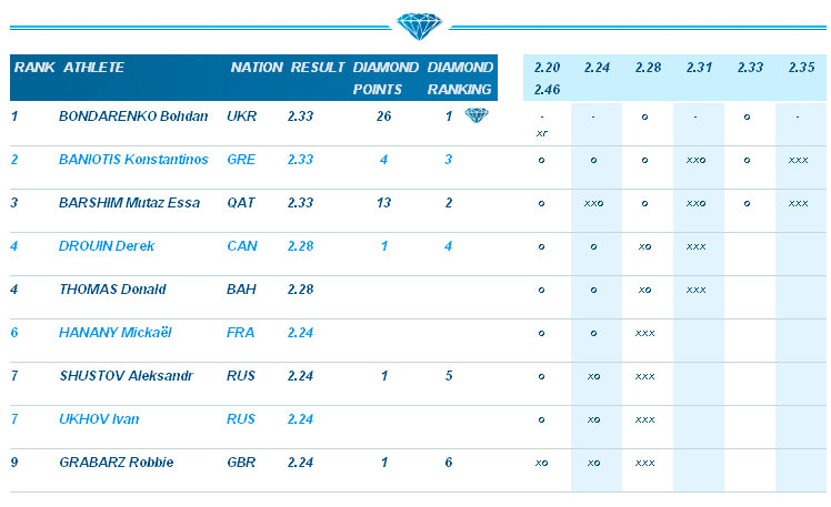 Все результаты Богдана Бондаренко на Бриллиантовой лиге 2013