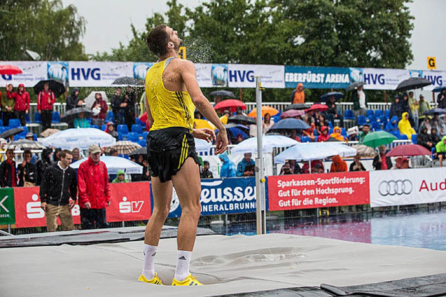 С первой попытки Богдан взял высоту 2,27 м, и мог бы завершить соревнования победителем, тем более снова начался дождь, но "Зрители были просто отличные, так что я пошел вперед".