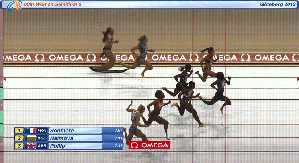 Фотофиниш второго полуфинального забега на 60 м